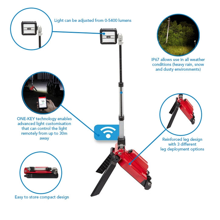 密尔沃基M18Onersal-0非常适合以0-5400流明的黑暗区域,无论IP67造成的天气如何。光线可用于大雨,雪和尘土飞扬的环境中的所有天气条件。Light使用TrueView™高清光输出技术,该技术提供一致的光束并优化了颜色温度,以显示颜色和细节的真实表示。灯光亮度和运行时间很容易通过One-Key™调节,该™使用户能够从最高30m的远程自定义光线。